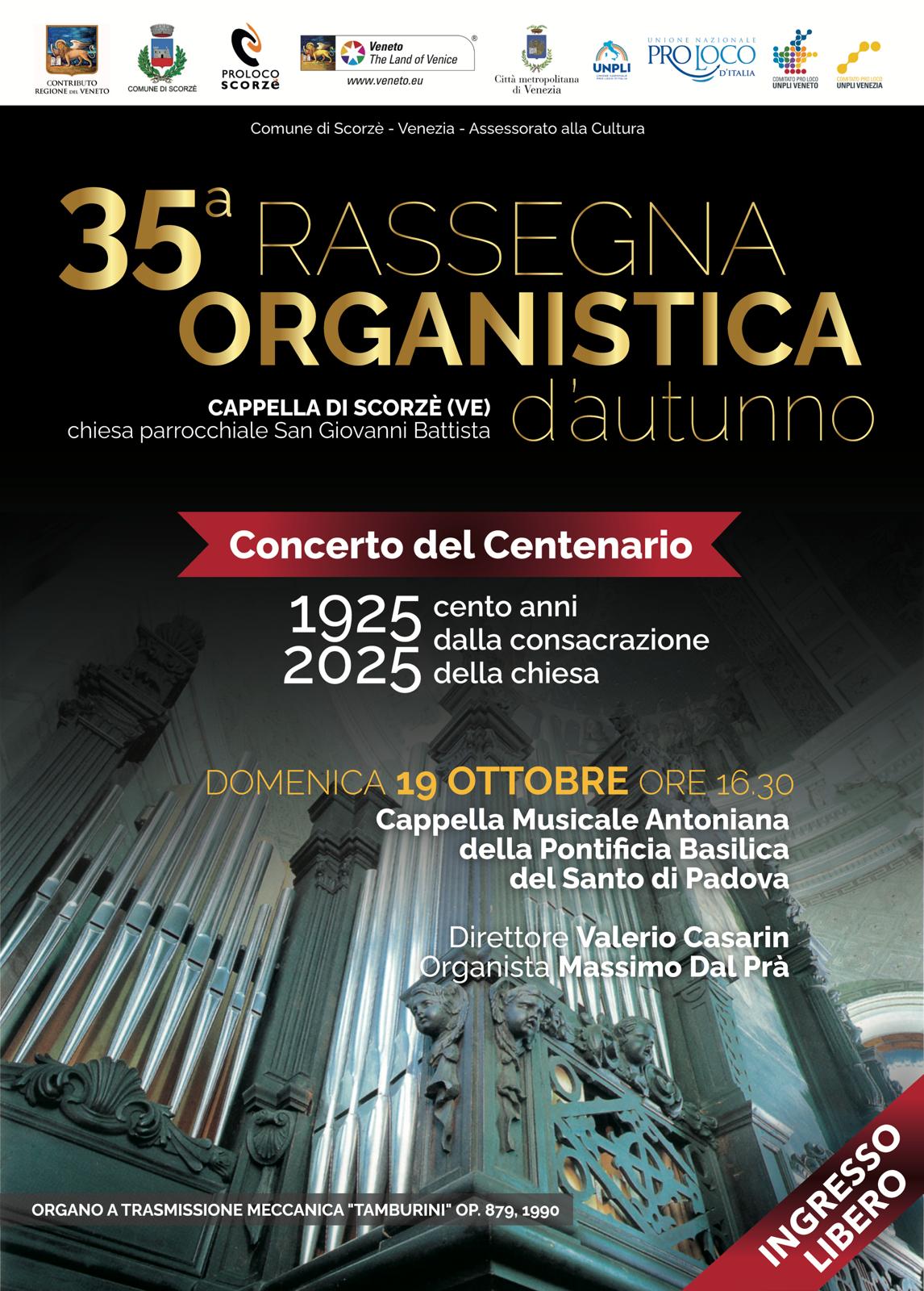 L’evento si terrà domenica 19 ottobre 2025, alle ore 16:30, e vedrà esibirsi la Cappella Musicale Antoniana della Pontificia Basilica del Santo di Padova, diretta dal M. Valerio Casarin, col M. Massimo Dal Prà all’organo.